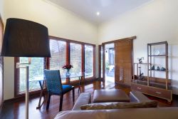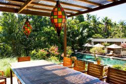 tourist attractions but can be totally self sufficient. Our days were spent walking in the village, eating, in the pool, playing pool, pre dinner drinks, watching DVDs chatting and reading. The staff are excellent - discrete but attentive. The facilities are ideal. The menu is well thought out and the meals were excellent and based on local food - served family style which we prefer. Be prepared to relax and enjoy the locality. Our early morning walks through the village were a highlight. Be aware that there are steps involved in reaching the property so check it out carefully for anyone with mobility issues but this is a common concern in Bali.