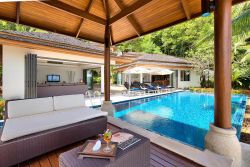 This Villa is located at the West end of Bophut beach. As it is at the end of the beach nobody goes there and it is like having your own private beach. We booke