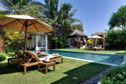 周圍環境很美,濃郁的巴厘島熱帶氣息。別墅的位置是一個漁村,能夠身在其中感受當地風土人情和巴厘島田園生活。室外花園甯靜舒適,在這有點找到室外桃園的感覺。工作人員無微不至非常貼心,巴厘島本來就是一個美食很多的地方,別墅配備的廚師烤的食物非常地道~出去玩回來舟車勞頓之後還可以請SPA在別墅上門服務,這一次和家人非常享受