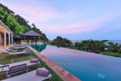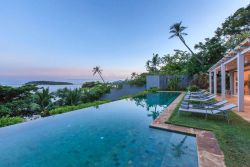 真的是很不错的一家别墅啊。我特别钟情别墅内的无边游泳池,特别的美丽,特别的好玩。别墅的整体风格是现代简约加上点自然复古,自然元素贯穿着整栋建筑。尤其是到了傍晚,别墅内温柔的光加上无边泳池的淡淡的反光,再配上远处的海风和柔和的月光,画面超级唯美的。