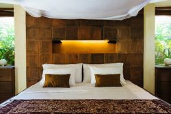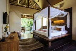 总体来说嘛,别墅还是蛮满意的,虽然说价格有点高,但是一分价钱一分货嘛,在这住的一周,过的很舒坦啊。别墅很宽敞,整个格调是深色咖啡调的,棕色和咖啡色几乎每处都可以看到。别墅内休闲娱乐的地方也很多,但是主要是休闲的地方,几乎到处都有藤椅让你休息。别墅房间内的四柱床也很有特色。