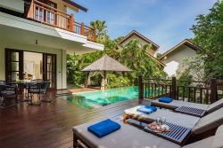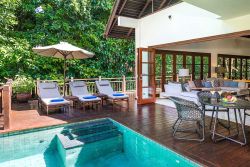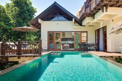 别墅坐落在一个度假村内,整个度假村氛围轻松,给人高度的隐私感,这点我很喜欢。周围丛林环绕,让我真正感觉自己来到了热带旅游。别墅有通往私人沙滩的通道,沙滩上的游客非常少,不会有拥挤的感觉,这里可以看到公海,印度洋也非常美丽。附近有闻名的冲浪胜地,我看到很多健壮的小伙子在那里冲浪,也有很多人在晒光浴,好是惬意。来这里主要是