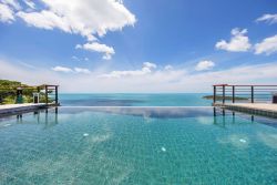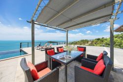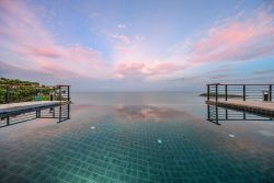 选择了很久终于决定这一间房间,每一间房都是独立的小屋子,可以完整拥有自己的专属空间,而且可以看到很漂亮的景色。在泳池旁或是阳台上就可以看到泰国湾的全景,非常美好,每天在这里欣赏日落的场景,好是惬意。