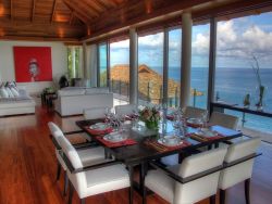 天蓝色的大海的全景真的很赞,很壮观,非常有感觉.和我们所期待的一样,别墅超棒的!别墅坐落在山林之上,给人一种险峻的感觉,周围景色也很美。客厅里不仅配有电视机,还有一个台球桌可供娱乐。内部装饰体现着现代时尚与传统的完美结合,很有艺术的气息。下次继续来这里度假~很难忘~