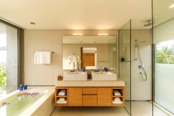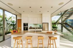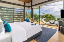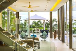 别墅有六间宽敞的卧室,其中三间处于楼房之中,而另外三间位于水池边上。池畔房间之中有两间是面海的顶级套房,有间风景超好的海景房和豪华双人床,别墅离海滩不远,路上时间花费不长,玩的也很开心,顶级的简约设计和大師級的现代家具让这栋别墅看起来很舒适,很喜欢这种风格。