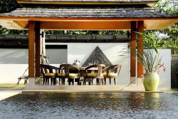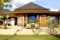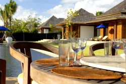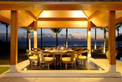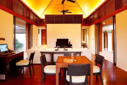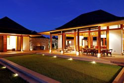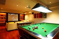 别墅晚上夜景超级美!晚上吹着海风,加上温柔的灯光,2者互相交错,简直美如画。别墅内设施齐全,也很干净。很多都是红色地板,木质家具,看上去很高档的样子,房间设计简洁,一点也不错乱。家庭影院的视觉听觉效果也是好的惊人。边上就有个台球桌,电影看累了,还可以来几盘台球呢~