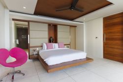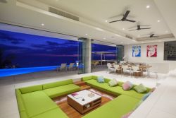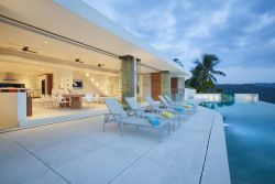 别墅内设计独特的客厅连接着阳台,可直接通往泳池,完美地将一处地势较低的休闲空间与奢华的躺椅和用餐区结合在一起。透过房间内高端的落地玻璃门,外面的美景一览无余。无论是白天还是晚上,在户外都能惬意地感受凉爽的海风。美好的假期,就是要来这种舒服的地方游玩!