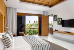 我住的这间别墅的位置很好,离机场什么的都是比较近的,离市中心也只有10几千米。别墅的整体风格偏简约,给人一种很轻快的感觉,而且很舒服。别墅内还有个小泳池,是环形的,不大,但是和别墅很配。别墅卧室内的装修也是很新的样子,床边上的小台灯很温馨。外面也是玻璃的滑动门,视野很开阔的。
