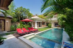美丽的花园配上清澈的泳池,天空的骄阳配上头顶的太阳伞和舒适的躺椅,惬意的生活~来到巴厘岛和家人们度假,选了这家离沙滩很近,喧哗闹市区却闹中取静的这一所别墅,真正感受到了什么叫放松。私人管家替你打理你所需要的一切,服务很贴心~