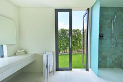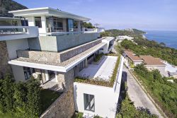 这座别墅是建在山坡上的,有种遗世独立的感觉。刚好面朝大海,而且房间的阳台跟休闲区的设计都是可以俯瞰大海。整个别墅是以白色为主,外形有点像砌乐高,并不是整齐的砌在一起而是凹凸不平的,很特别。最喜欢它的15米L型无界泳池,以前看电影就羡慕主人公有这么一个泳池,现在自己也拥有了,觉得好幸福。
