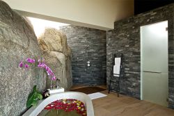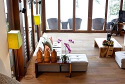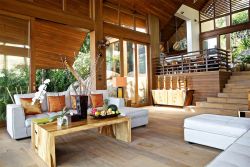 Hinta别墅非常的适合度假,别墅外就是白色的沙滩和蔚蓝的大海,周围是茂盛的热带植物,别墅坐落于中央显得典雅大方。这栋别墅的最突出的特征就是它有着雪松木瓦片盖的屋顶,打造出了超高空间和阁楼,空间感更足,也能让我们觉得更加亲近,并且很舒适。