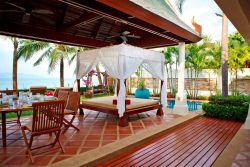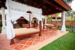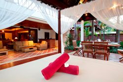 花园的每一侧都有亭园,私人隐蔽不错,正好我们这次来度假就是想静下心来好好享受假期的。卧室装修很满意,给人亲近的感觉,听服务人员说是都是用的柚木材质,这边的装潢都是经过专业人员精心布置的。卧室可以看到海景,闲下来的时候感受下海边的傍晚也是一件惬意的事情不是吗?