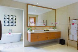 别墅真的很不错哦,很适合休闲度假,我和朋友们在这个人间天堂住了一周多,公司里的小伙伴大家都觉得在这里住的很舒服。别墅外的泳池很大,很适合游泳,好像有14米长,还有浅水区,如果带着孩子可以让他们在那玩水哦,很安全的。卫生间内的浴室套间也很好。别墅去岛上其他旅游景点也很近的~真的是住过的最好的一家了