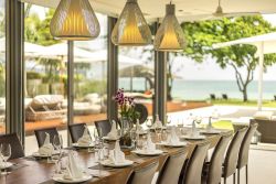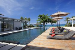 清晨逆光中的风景也很美,大大的客厅、餐厅面朝大海,大面积的玻璃门窗,让阳光肆意的洒进来,泳池、沙滩、大海,尽收眼底,别墅的美丽再次惊艳了我!男朋友一起来就拉着我去玩啦。我们踩着露水,在蹦床上跳跃,阳光渐渐强起来,然后去餐厅吃了饭,厨师真的是一级棒!当地的服务也很不错~