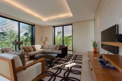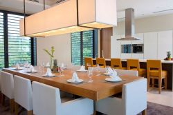 后现代风格的大别墅占地4000多平米,典雅的实木地板装饰的8间宽敞卧室全部享有令人屏息的唯美海景。10间卫浴室装备奢华完善。2个高级现代化烹饪器械齐全的专业厨房与两个餐客厅直接相连。1间客厅还配有高科技卫星系统设备和华丽液晶彩电。就光光这些完善的设施就让人流连忘返,再加上当地热情的服务,实在是个旅游放松的好地方。