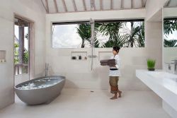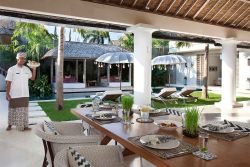 趁着孩子假期,特意带家人来巴厘岛旅行。看了很多别墅,觉得还是住这儿比较好,特别有当地特色,我父母很喜欢。房间很大很宽敞,床也很舒服。值得一提得是,别墅里配备的私厨做饭非常好吃,父母吃不惯这边的菜,厨师就为他们做了中餐,还给我的孩子做了儿童餐,把苹果做成了兔子的样子,小孩子很开心。别墅离水明漾很近,司机送我们过去很快就到