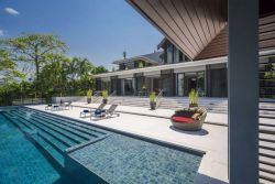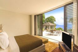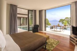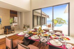 ... Read more+ d magnificent villas dotted around landscaped gardens. Some of these villas were simply huge! As we entered no. 4 we were greeted with a lounge of cathedral proportions. A stunning full height room towering up to the rafters. At the far end the glazed wall was folded back so that there were unobstructed sea views. I gather the villa was designed by Philippe Stark and it shows. All the rooms were huge and incredibly high ceilings making it cool and with a feeling of peace and freedom. The kitchen also opens up onto a seating area where we loved having breakfast , again with fabulous sea views. The area around the infinity pool was beautiful and the sala (covered open area with sunbeds) a relaxing base to watch the pool and admire the sea and island views. The TV room was also huge but we did not use it . Everywhere was well and tastefully furnished. The house keeper was great and most of our meals we ate in because we did not feel the need to leave. The restaurant, Breeze, was a 2 minute walk and had a good lunch and dinner menu and an unusually good wine selection. We also went to the hotel on the complex which is beautiful and again brilliantly designed. We will definitely stay here again.
