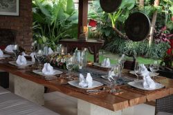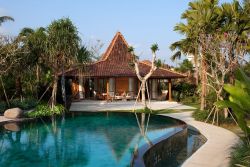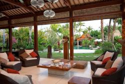 一个带有巴厘岛风格的别墅!别墅的设备配置很奢华,有大型泳池,健身房,桑拿房,还有水疗中心,游乐场,工作人员还会给我们做按摩,非常的舒服。泳池在花园里,非常美丽,没事儿还可以晒晒日光浴。三名主厨帮忙做饭吃,真的是很享受的生活啊。非常棒的别墅!